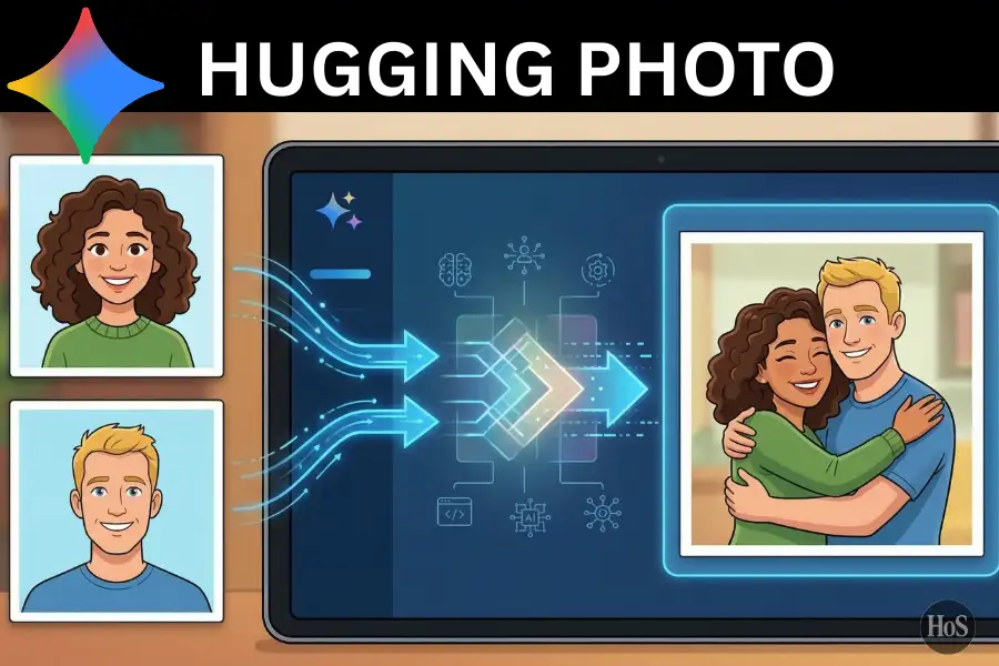 Gemini AI, Google’s image generation tool powered by the Nano Banana model, lets you upload two separate photos and blend them into one natural-looking scene where both people appear to be hugging. The output doesn’t just look copy-pasted. Done with the right approach, it actually looks like a real photo. I’ve tested this multiple times, and I can tell you the difference between a lazy prompt and a detailed one is massive.
