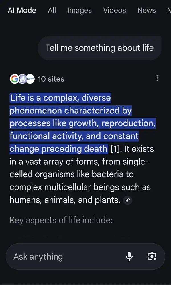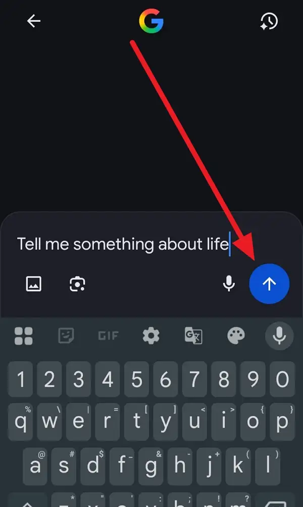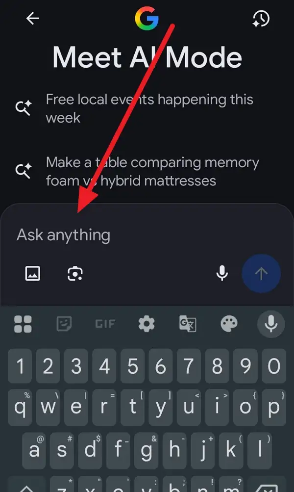 5. Next tap the up arrow icon to get the answers. Wait while the AI Mode processes your search.
